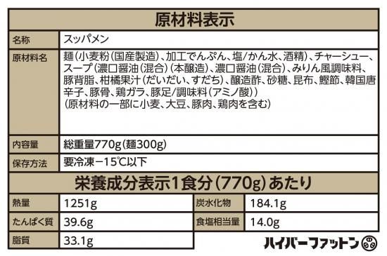原材料の一部に小麦・大豆・豚肉・鶏肉を含む